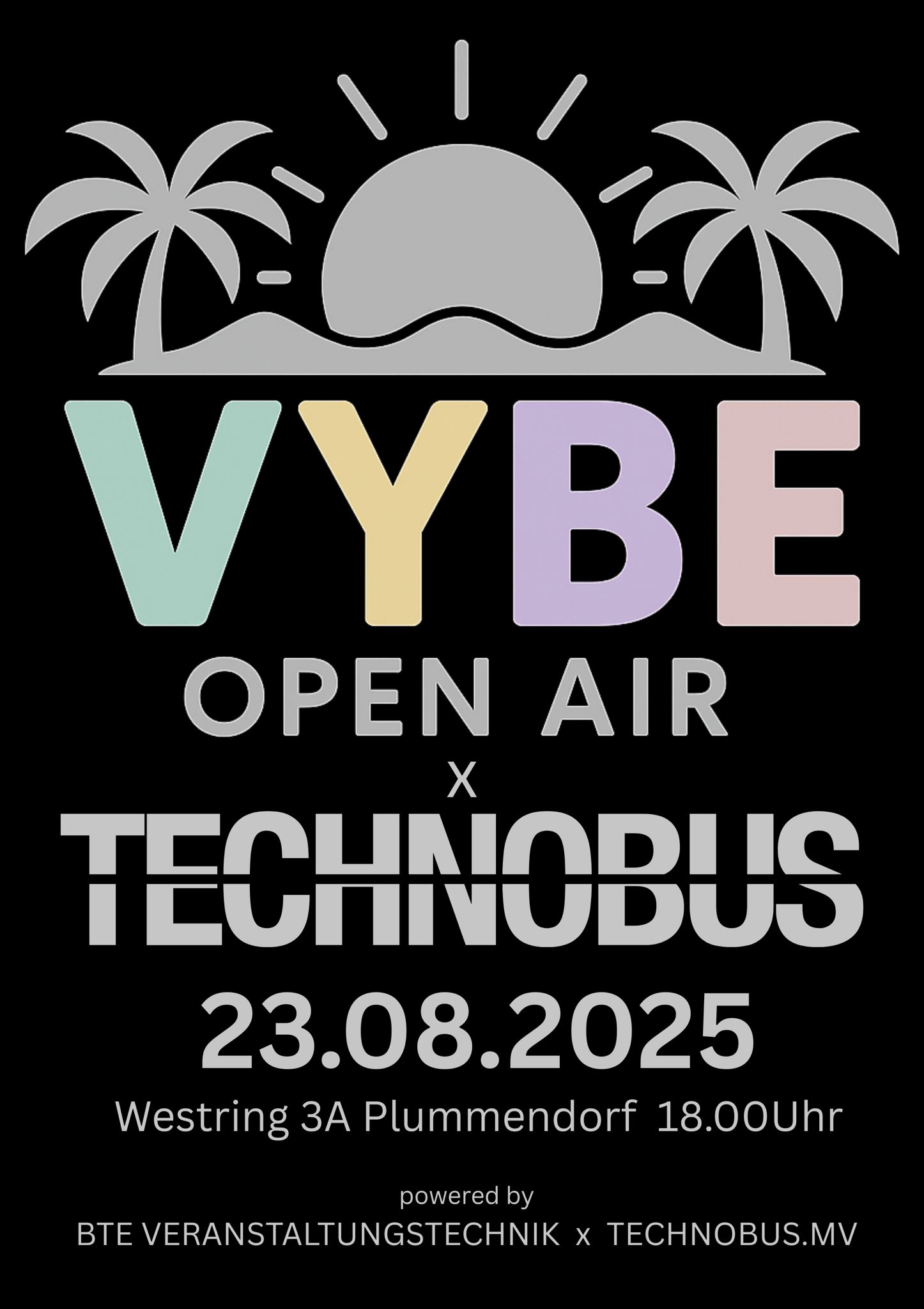 DAS VYBE Open Air in Plummendorf meets TECHNOBUS MV. Sei dabei, wenn der Technobus wieder für die besten Beats in ganz MV sorgt!